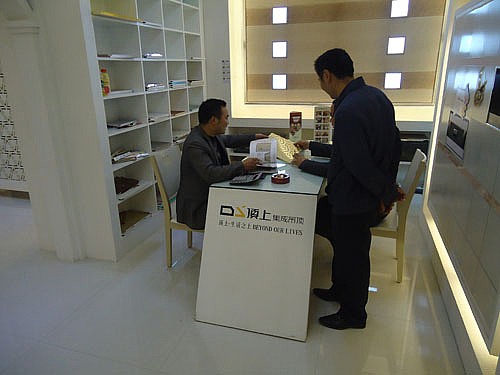 顶上集成吊顶湖南新化县专卖店位于新化县学府建材城,于不久前盛装开业。顶上集成吊顶湖南新化店采用了全新的店面风格设计,白色的基调辅以淡淡的简欧风格,高雅纯净。当配上行业独有的顶上集成吊顶DIY简欧个性化定制画和精致的顶上产品之后,整个风格又凸显出一股豪装的风范来,精致豪华、美轮美奂。当光源打开,温馨的暖黄色灯光淡淡的洒满每个角落,一股家的温馨感觉油然而生,令人不知不觉想到“顶上生活”这个顶上集成吊顶一直强调的宗旨。
